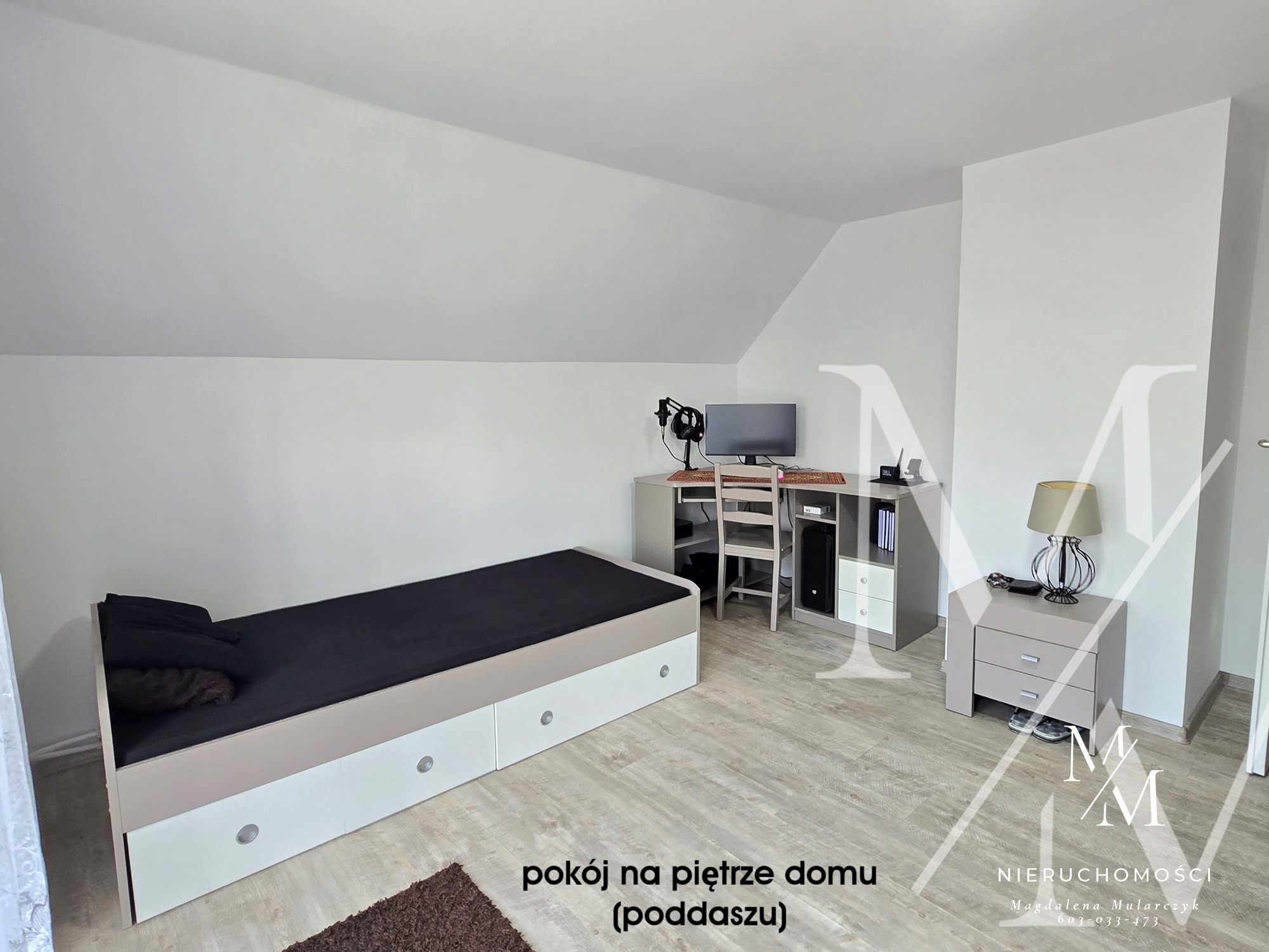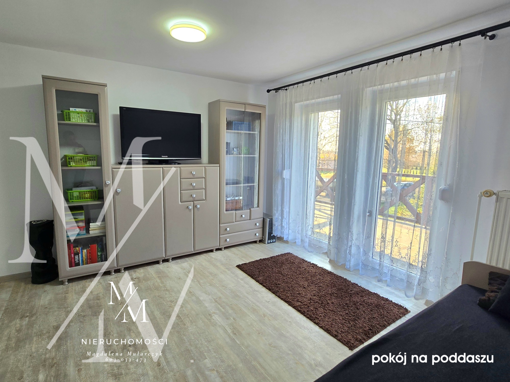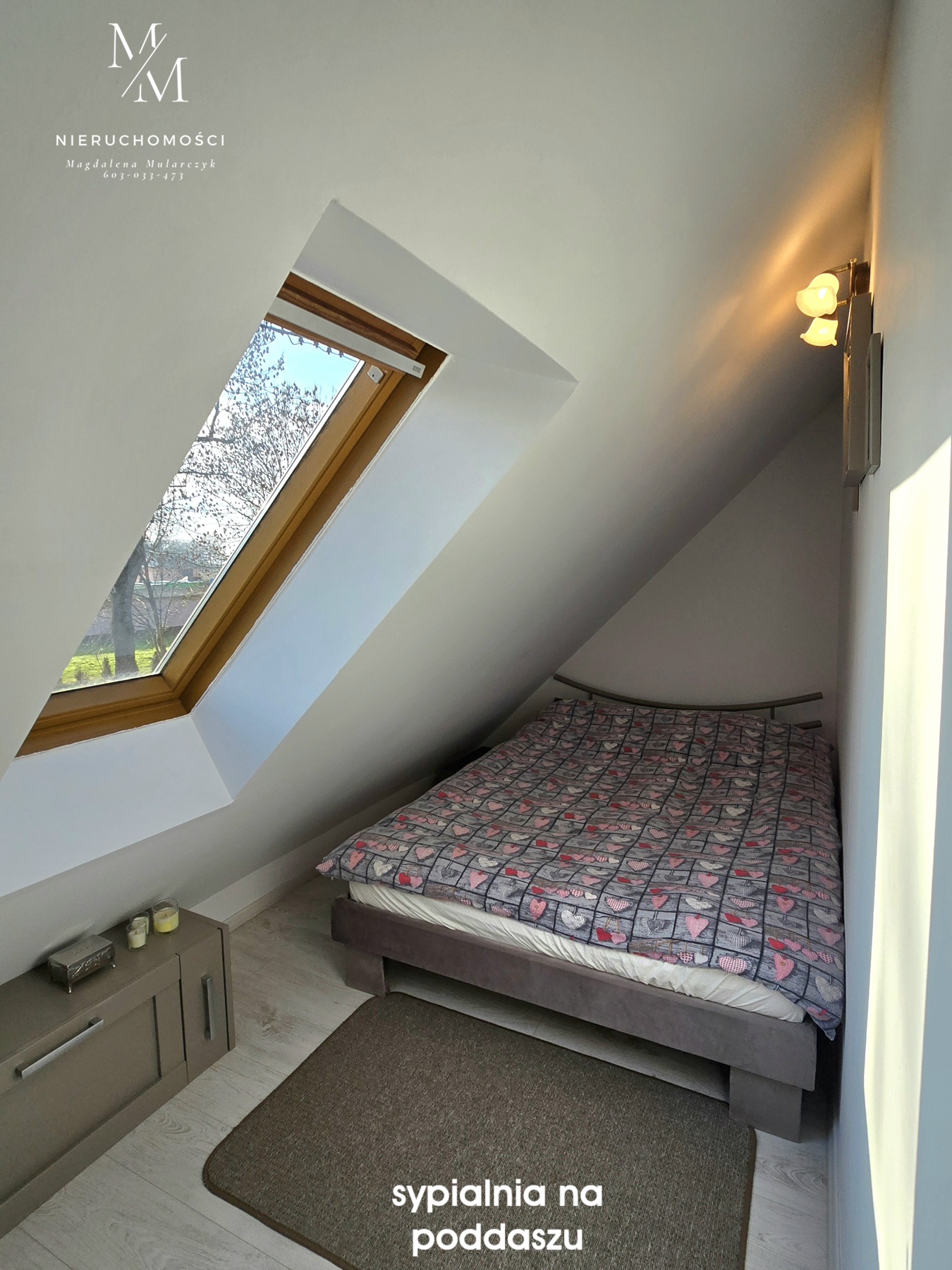 Na poddaszu znajdują się dwa pokoje: sypialnia oraz pokój. Z pokoju wyjście na taras.